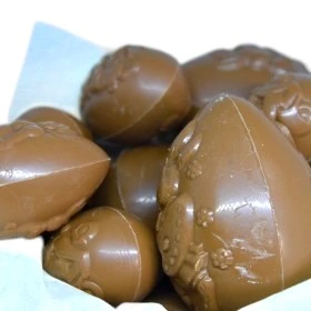 Al onze holle eieren en onze kleine gevulde paaseieren zijn vervaardig van 100% zuivere Callebaut chocolade.